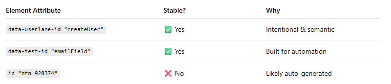 - Pick a stable selector. Choose an element that’s unique and unlikely to change.