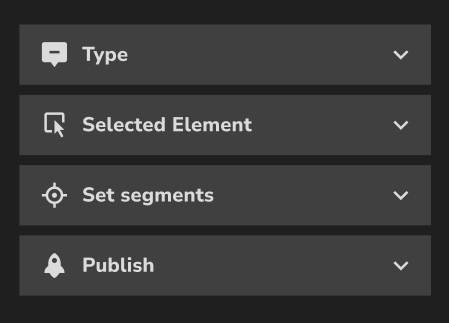 - Define the settings. You can add choose the Tooltip type, can reselect an element if needed, set a segment, link it to a Guide, and choose the publishing language.