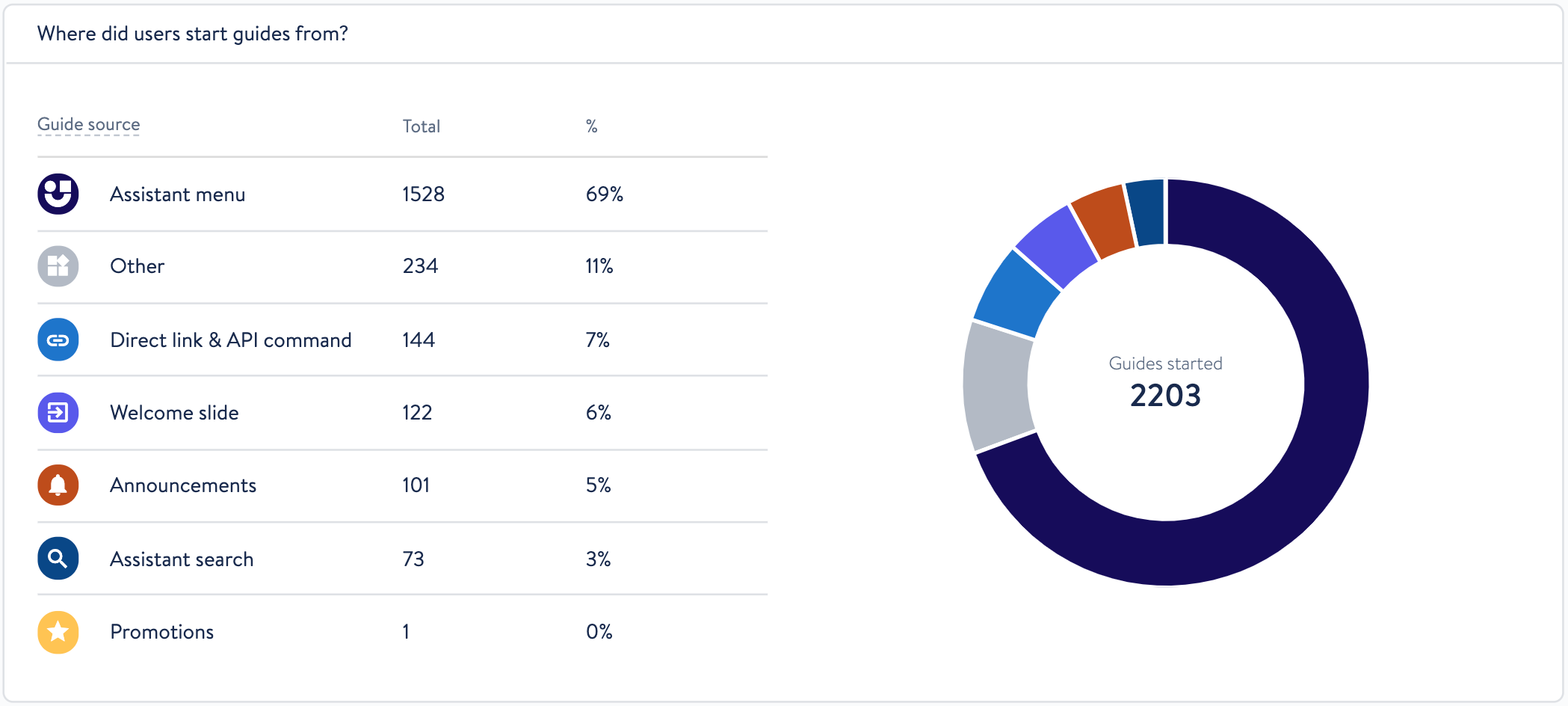 %: The percentage of times a Guide was started from each source out of the total Guide starts.