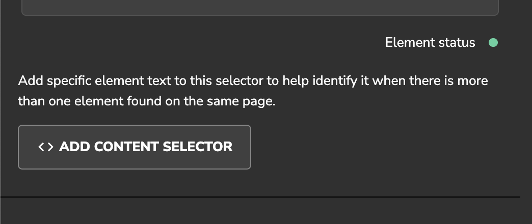 When Userlane detects a text, you have the option to click on the “Add element text” button. This will automatically update the selector to include text from the element. If the button is not available or the content of the element isn’t found, you can add and update the selector text manually.